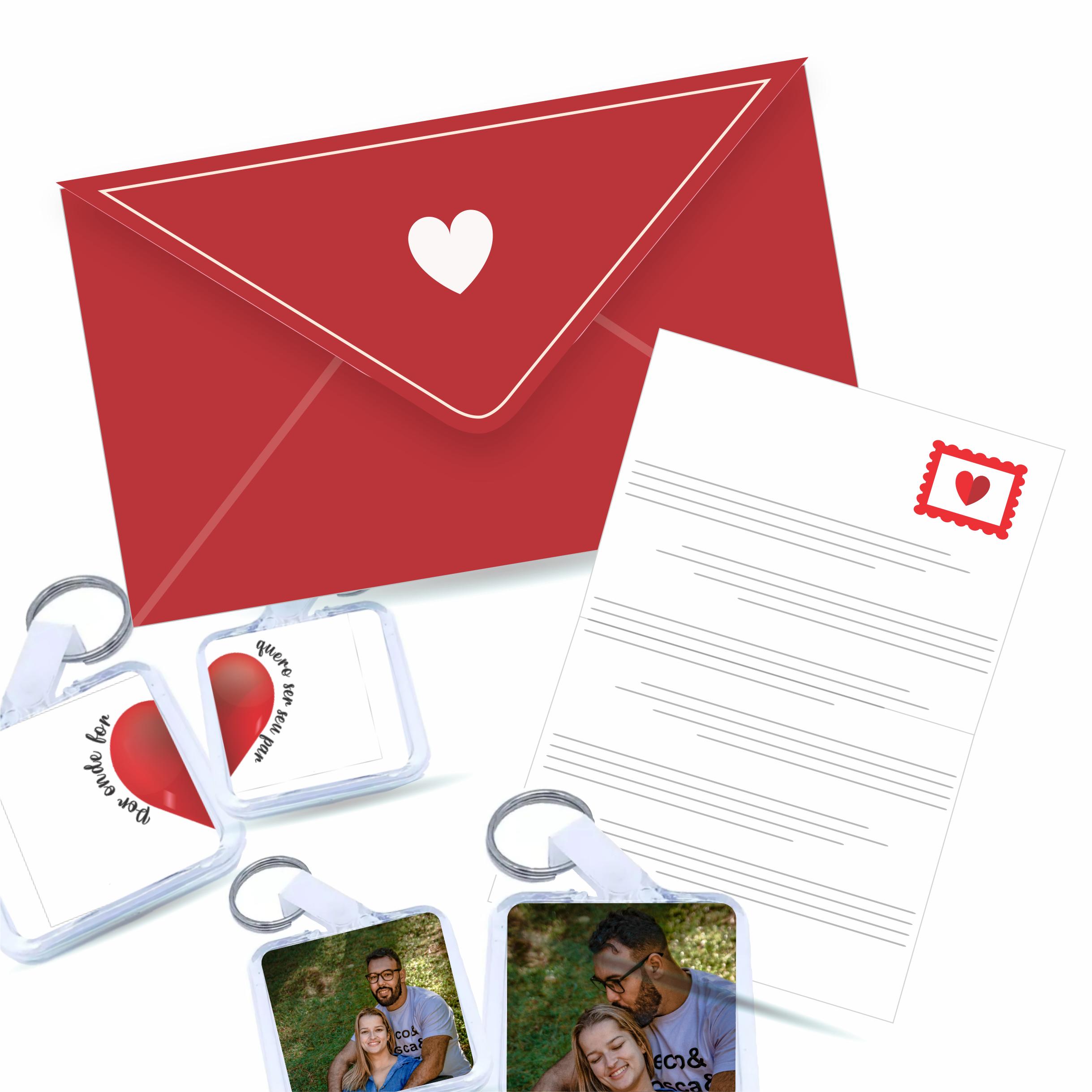 Surpreenda quem você ama com um presente único e cheio de significado! O Kit Chaveiros Personalizados + Carta Especial é a escolha perfeita para casais que querem eternizar momentos inesquecíveis.